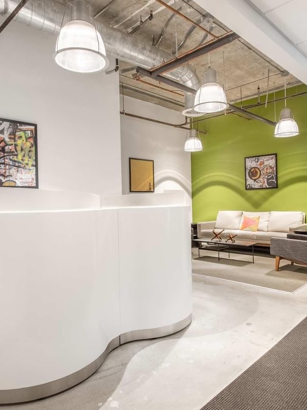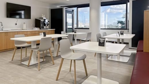 Es bietet außerdem einen Lounge-Bereich, Tagungsräume und, wenn Sie Ihrem Schreibtisch entfliehen möchten, eine Auswahl an Restaurants in der nahe gelegenen Aventura Mall.