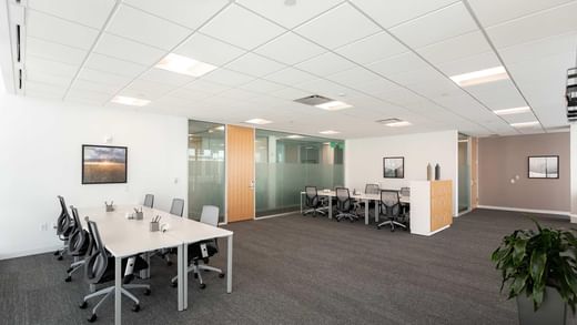 Profitieren Sie von den talentierten und vielfältigen Arbeitskräften der Küstenstadt, indem Sie sich in den offenen Coworking-Räumen im Lakeside Plaza vernetzen.