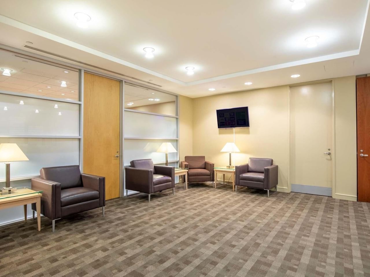 Drei Konferenzräume und Loungebereiche werden durch ein Fitnesscenter und einen nahe gelegenen Parkplatz ergänzt.