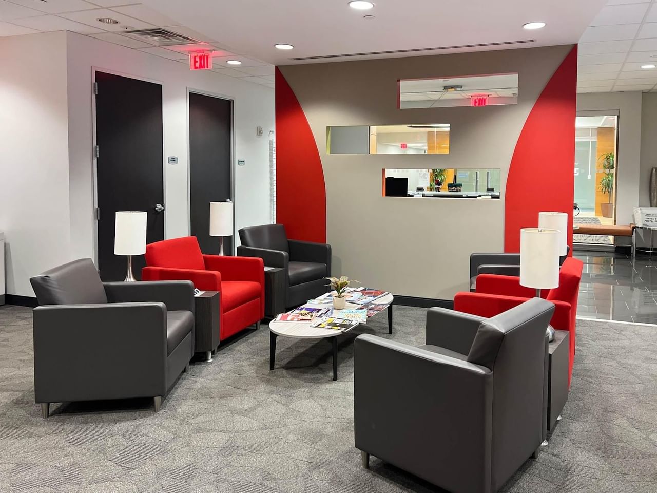 Wenn Sie das moderne Gebäude betreten, werden Sie von der beeindruckenden Eingangslobby mit Granitböden empfangen.