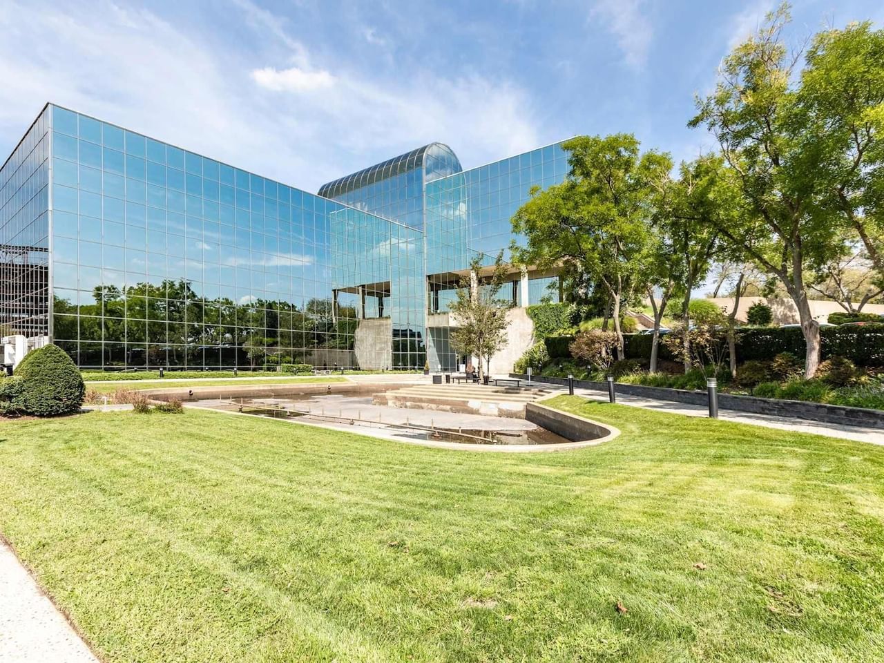 Das modische Mack-Cali Center III in Paramus ist ein auffälliges Bürogebäude aus verspiegeltem Glas, das viel natürliches Tageslicht hereinlässt.