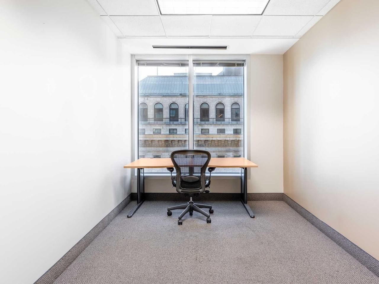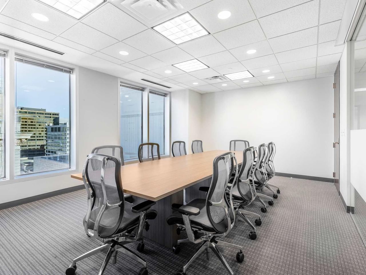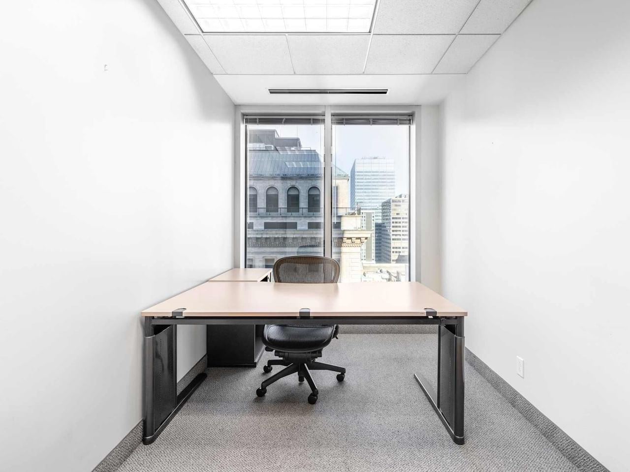 Großzügige Fenster bieten einen verlockenden Blick auf die Stadt, während Sie in den erstklassigen Räumen produktiv arbeiten können.