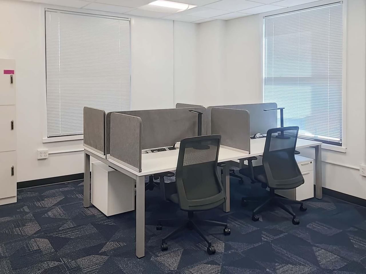 Arbeiten Sie den ganzen Tag über mit viel natürlichem Licht, das durch die Fenster scheint und eine konzentrierte Umgebung für wichtige Aufgaben bietet.