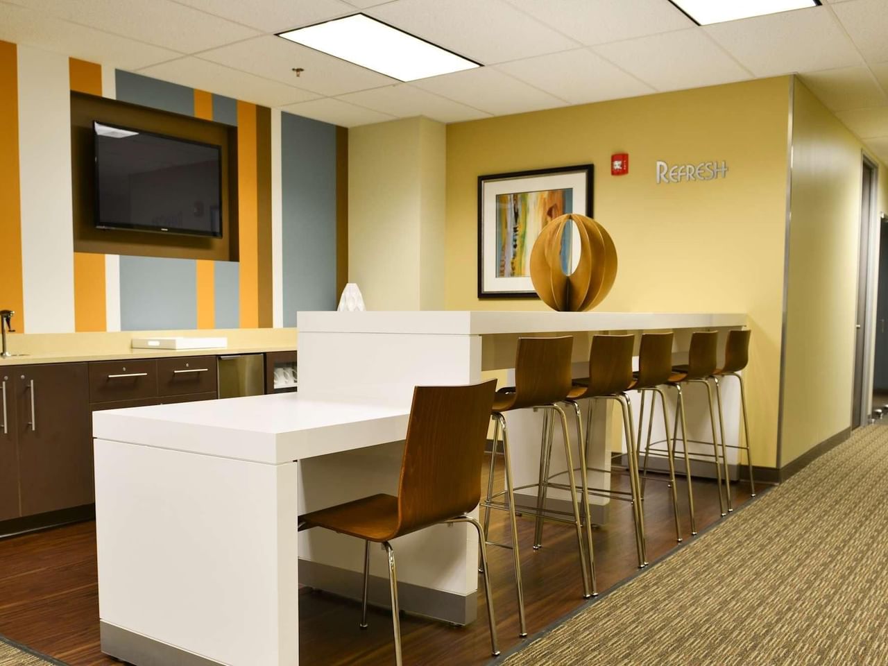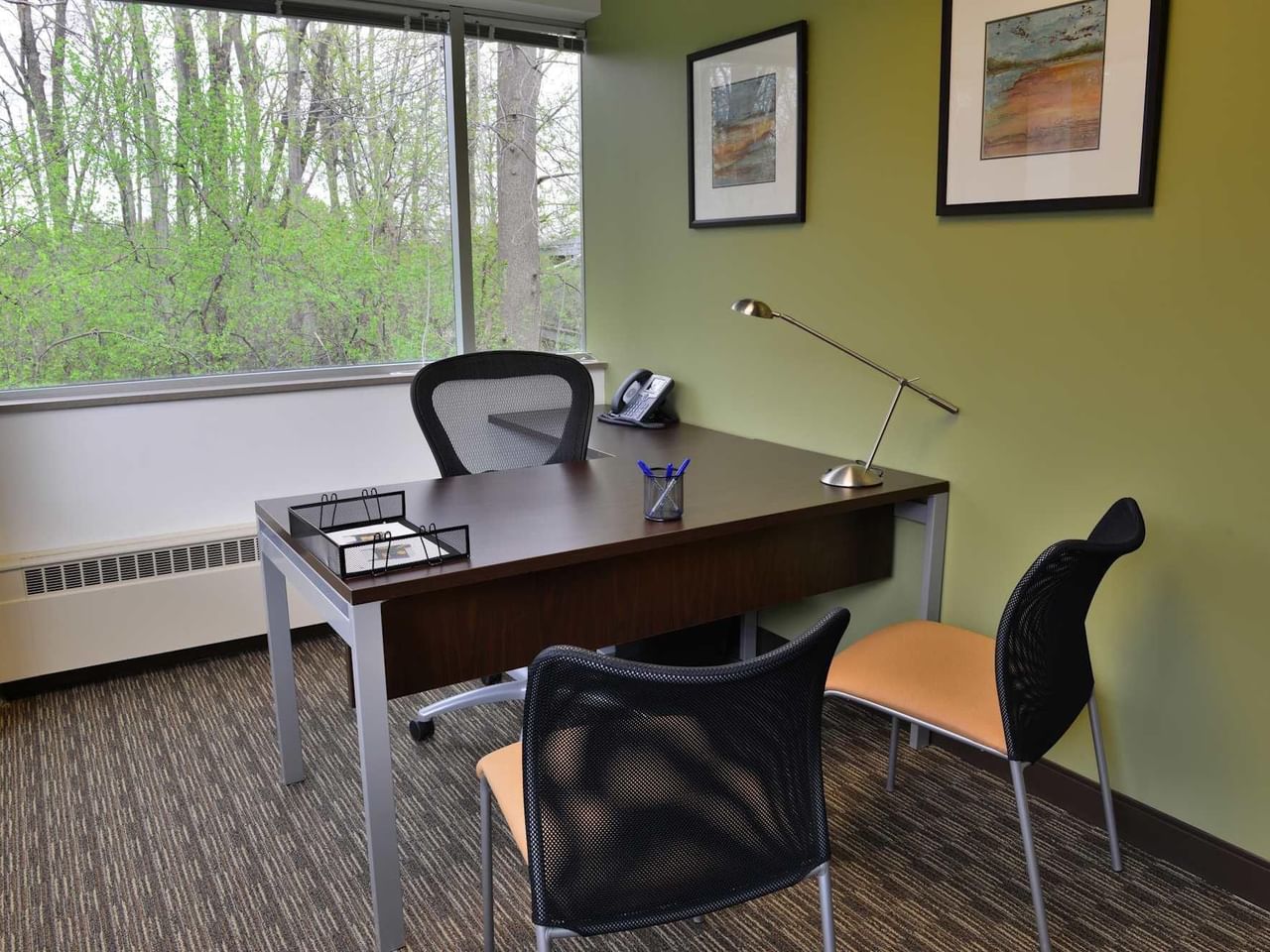 Konzentrieren Sie sich in der beruhigenden, grünen Umgebung auf Ihre Deadlines und treffen Sie sich mit Kollegen in den hellen Gemeinschaftsbereichen.