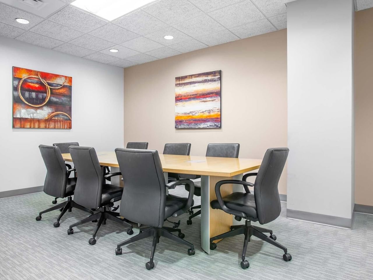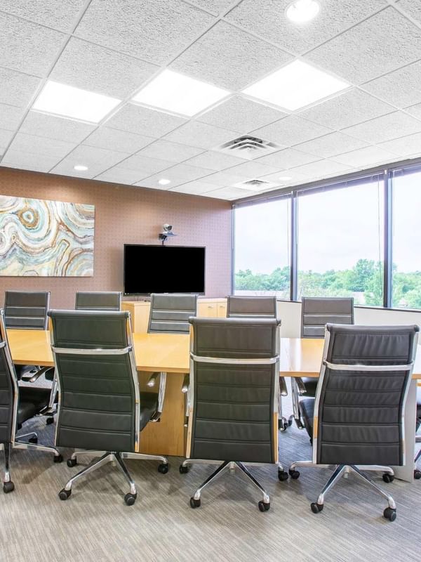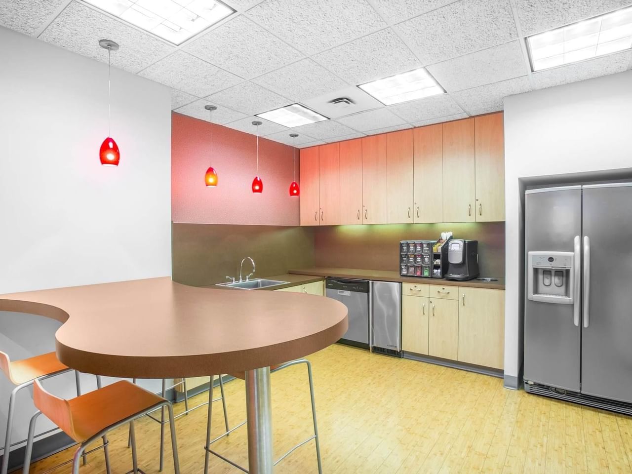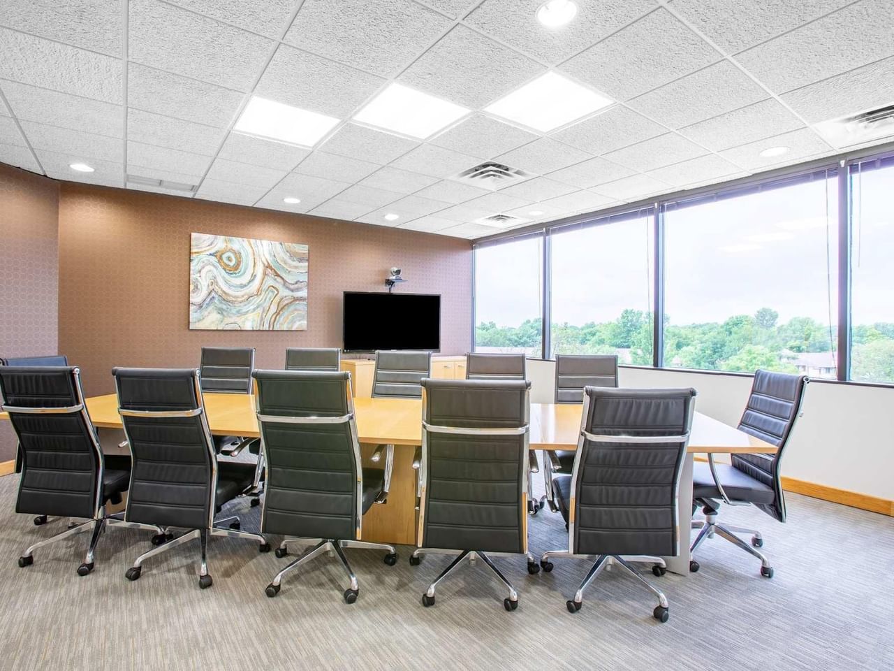 Im Inneren finden Sie effizient gestaltete Arbeitsbereiche: geräumige Besprechungsräume, einen gemütlichen Lounge-Bereich und eine moderne, voll ausgestattete Küche.