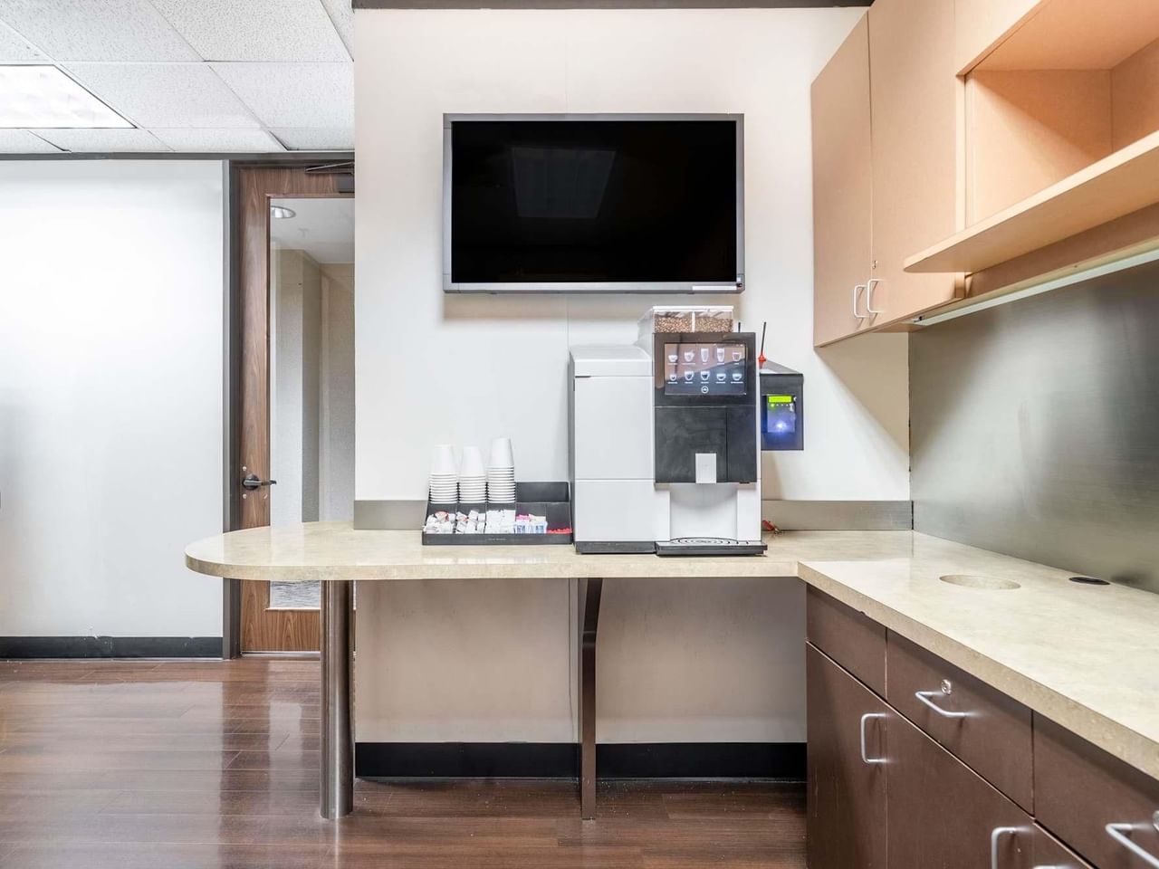 Eine sichere Tiefgarage erleichtert den morgendlichen Arbeitsweg, während die neuesten Videokonferenzeinrichtungen dafür sorgen, dass Sie überall mit Ihren Mitarbeitern in Verbindung bleiben.