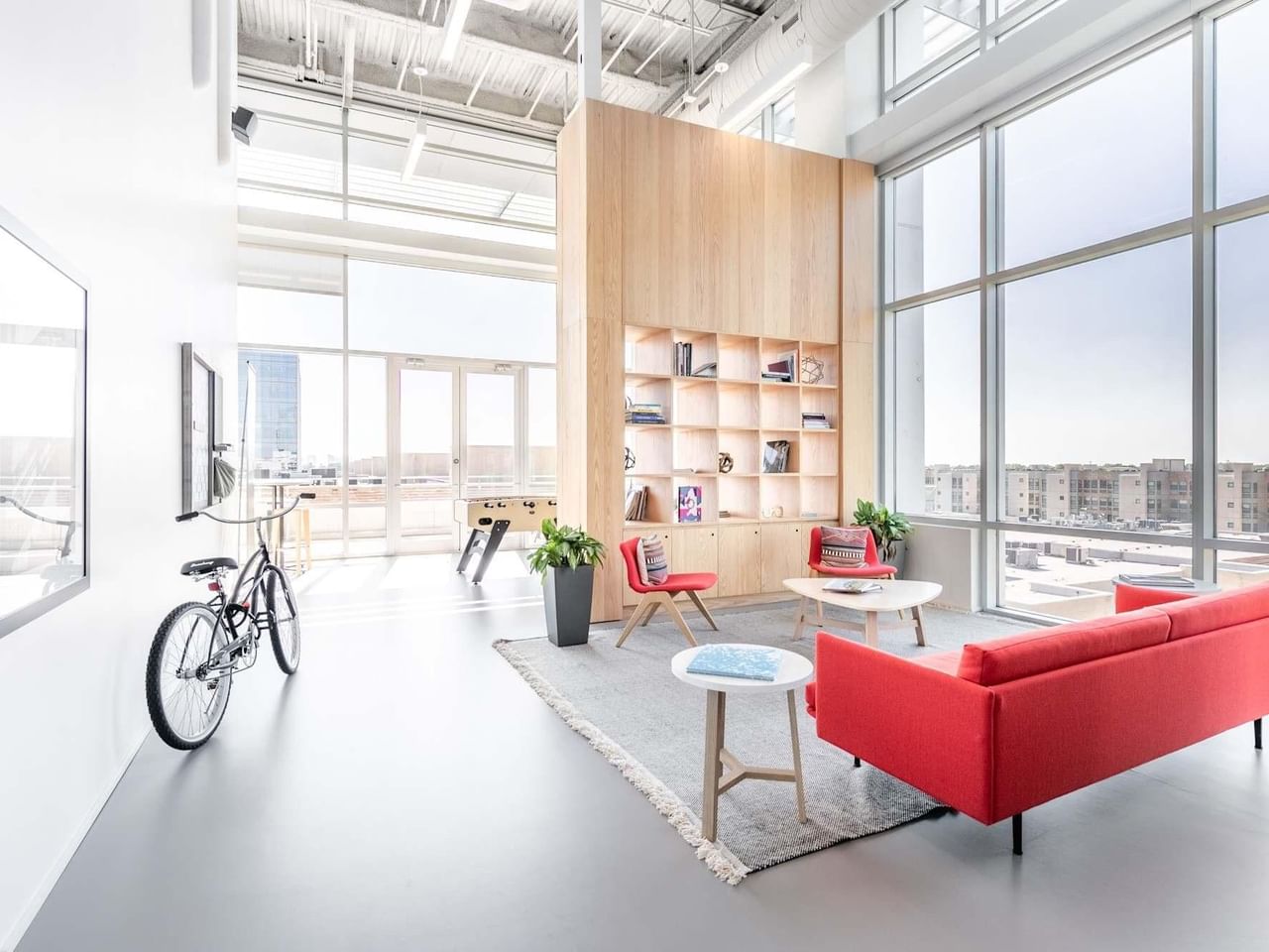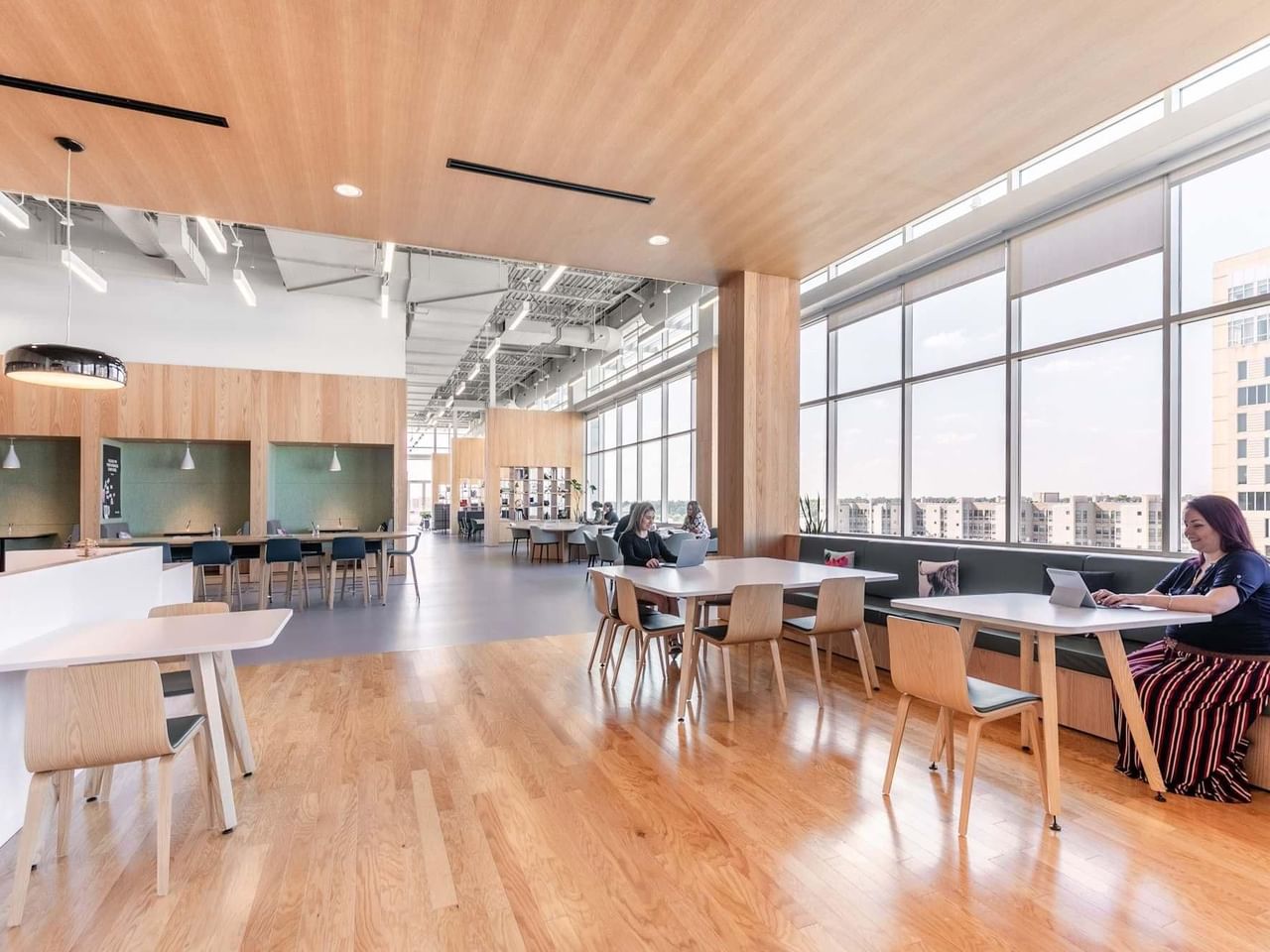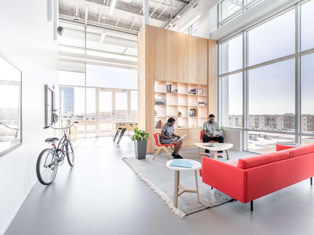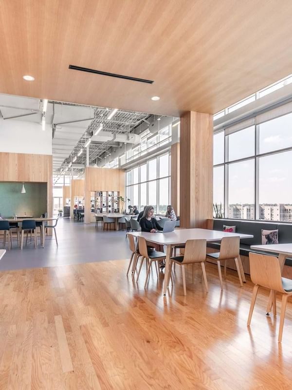 Wir belegen fünf Etagen eines zentralen Grundstücks und bieten eine ausgewählte Auswahl an privaten Büros, inspirierenden Besprechungsräumen, gemeinsamen Lounges und sogar Balkonen im obersten Stockwerk mit Blick auf den gemischt genutzten Campus.