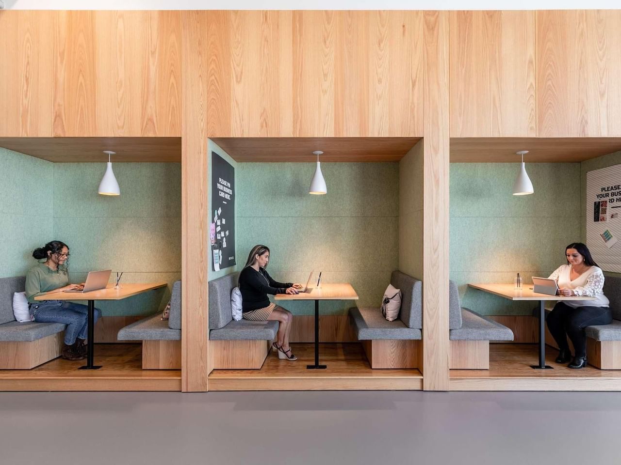 Jede dieser einzigartigen Arbeitsumgebungen ist mit superschnellem Wi-Fi ausgestattet, 24 Stunden am Tag zugänglich und durch natürliches Licht hell erleuchtet.