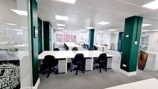 Es stehen maßgeschneiderte Büros mit 40 Arbeitsplätzen sowie Räume für Führungskräfte zur Verfügung. Das beeindruckende Gebäude verfügt über eine Dachterrasse, die sich perfekt für eine erfrischende Mittagspause eignet.