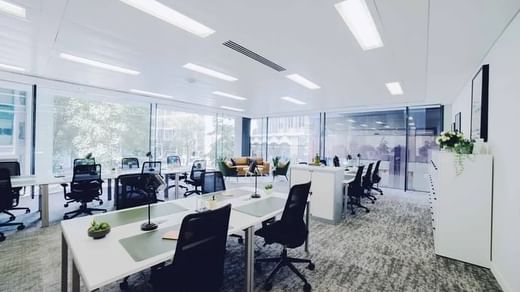 Vom Boden bis zur Decke reichende Fenster lassen viel natürliches Licht in Ihre Arbeit in erstklassigen Büro- und Besprechungsräumen einfallen.