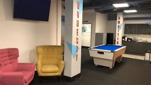 Unser New London House Workspace ist ein modernes Gebäude, umgeben von reicher traditioneller Architektur.