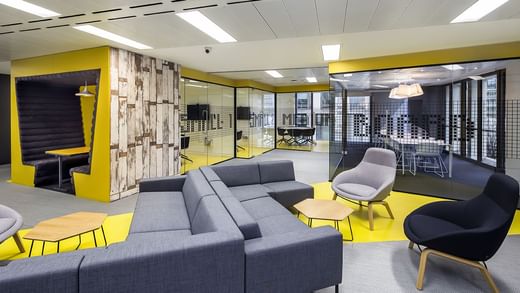 Piano hat einen atemberaubenden Workspace im Lagerhausstil geschaffen, der die Zusammenarbeit und Produktivität fördert, mit raumhohen Fenstern, Holzdecken, gemütlichen Sofas, hellen Pausenbereichen und einer modernen Küche.