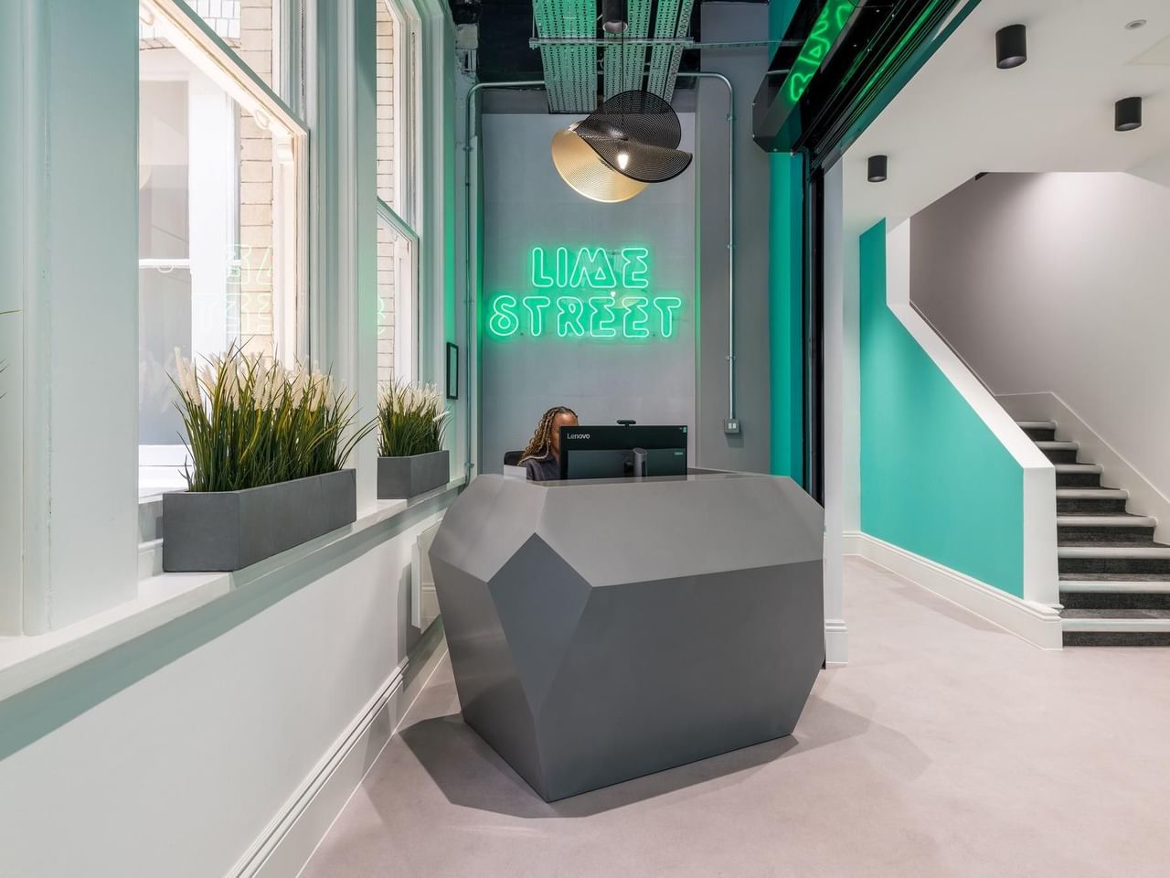 Unser flexibler Arbeitsplatz in der Lime Street 24 befindet sich im Herzen der Londoner City, an der Ecke Lime Street und Fenchurch Street. Hier finden Sie eine Auswahl an abgeschlossenen, voll möblierten Servicebüros, die sich für unterschiedliche Unternehmensgrößen eignen und zu flexiblen Bedingungen verfügbar sind, um Ihren individuellen Bedürfnissen gerecht zu werden.