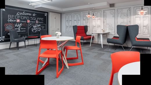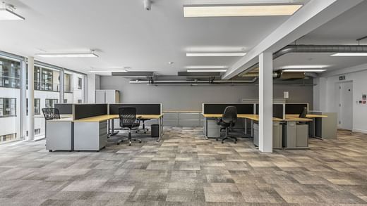 Die Schreibtische bieten einen ruhigen Platz für kleine Teams an einem der belebtesten Orte Londons, nur wenige Minuten vom Bahnhof Tottenham Court Road entfernt.