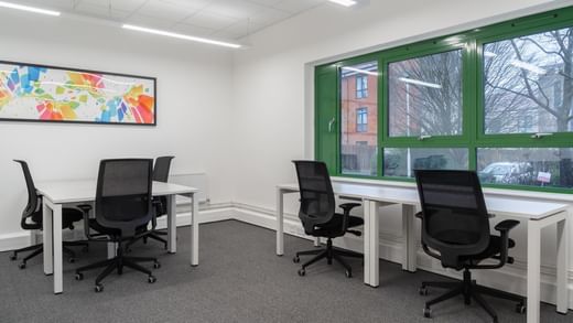 Kostengünstige und flexible Co-Working-Büroflächen mit High-Speed-Internet, ausreichend Parkplätzen und modernen Gemeinschaftsbüros mit Hot-Desks, Besprechungsräumen, Pausen-/Küchenbereichen und Außenbereichen.