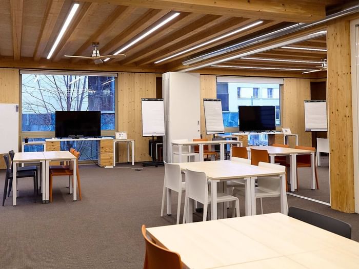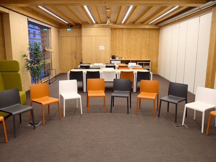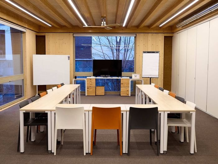 | klassischer Sitzungssaal | 2 bis 20 Personen | WiFi, Bildschirme, Whiteboard | Teambesprechungen, Interviews |