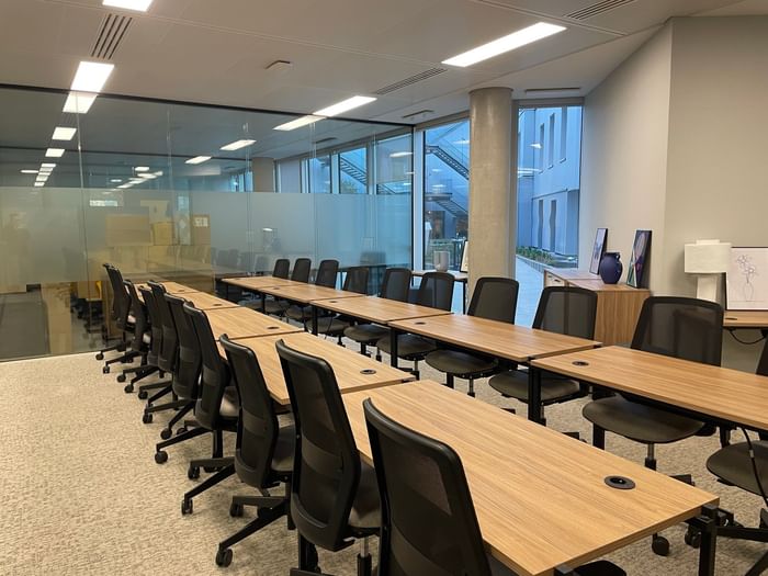 Wir lieben große Tische, aber manchmal braucht es nur zwei Stühle, um eine entscheidende Partnerschaft zu besiegeln. Meeting Rooms Paris 3 bietet eine flexible Lösung, die perfekt geeignet ist, wenn Sie auch Räume im historischen Zentrum von Paris suchen. In Paris 14 können Sie Tagungsräume für kleine, vertrauliche Besprechungen bis hin zu Konferenzen mit bis zu 50 Teilnehmern in einem hellen, gut abgeschirmten Raum abseits des Trubels der Stadt mieten.
