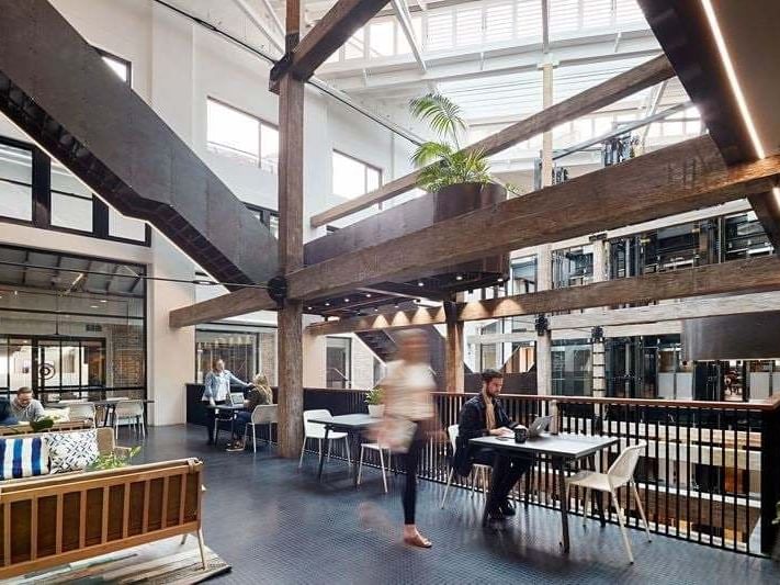 Once a wool storage facility, this Sydney office space has been transformed into a beautifully designed home for WeWork Pyrmont.