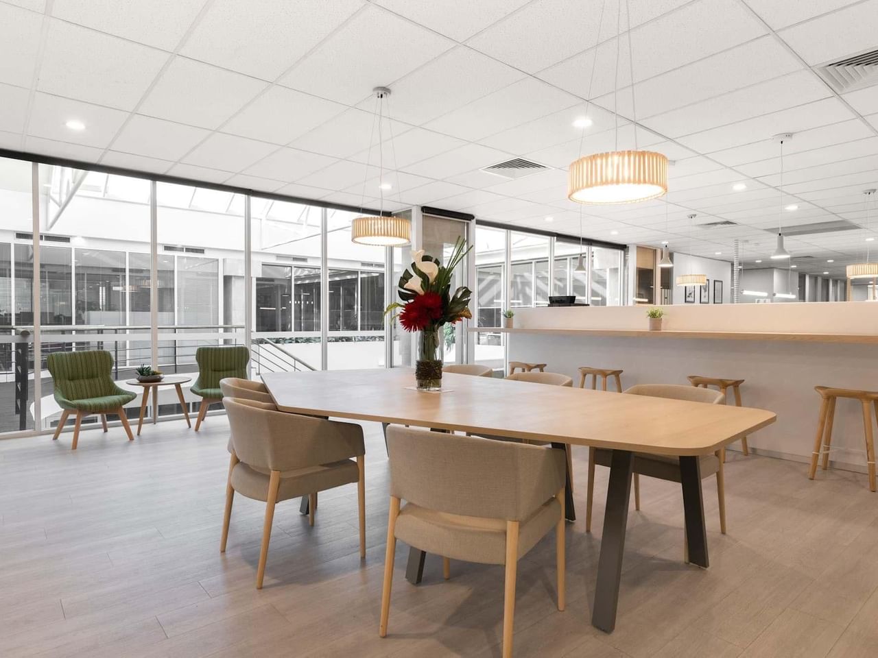 Drive your business forward in this modern brick office with light streaming in through large windows plus parking and a lounge on-site.