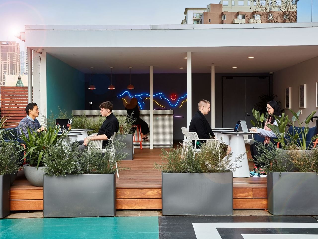 Need some fresh air during the day? Head to our sprawling balcony on the seventh floor, or take a phone call outside as you watch the city hum beneath you.
