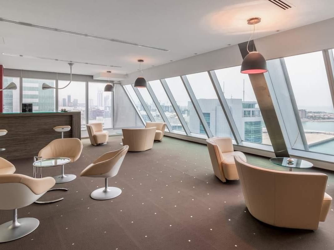 When the time comes to take a break or entertain clients, head to one of the many nearby bars and restaurants that overlook Bahrain Bay.