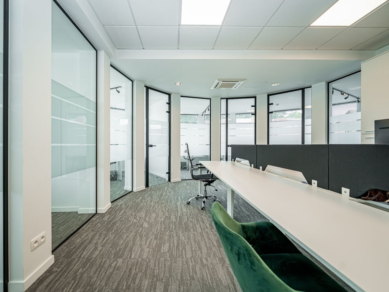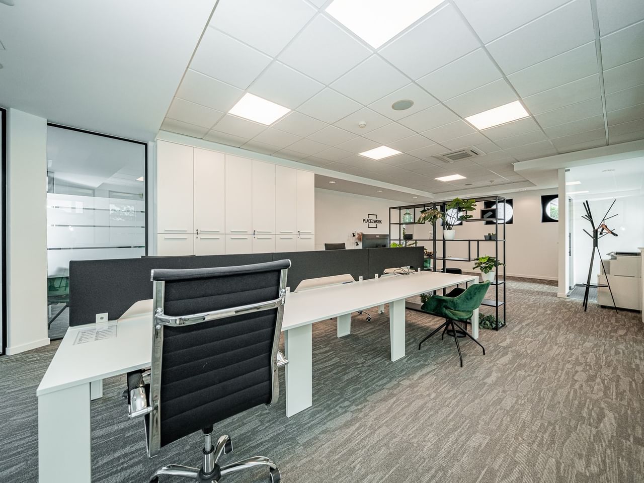 The building, spread over two floors, has a clean and modern design in line with PLACE2WORK standards and is equipped with all facilities. On the first floor, the coworking table takes center stage, surrounded by closed units for one or two people and a meeting room for up to 10 people. On the second floor, corporate offices can accommodate up to 5 employees.
