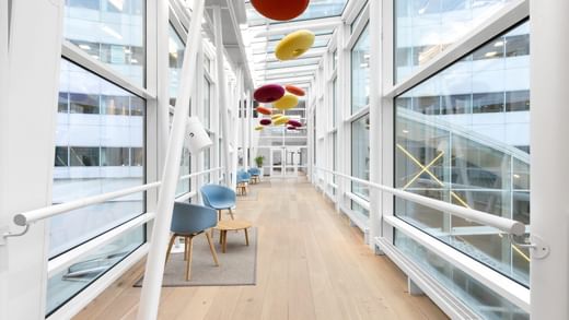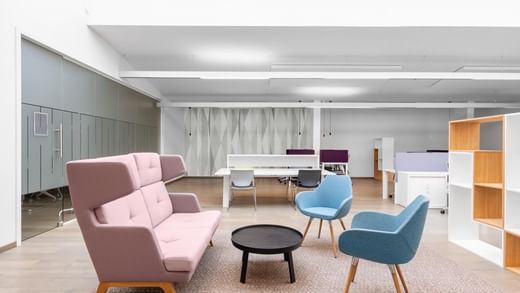 This unique location is situated in the heart of the Brussels InQbet @ P&G campus, an innovative and dynamic hub that connects startups and scale-ups to the internals of the multinational consumer goods giant. Interoffices' clients access this ecosystem via the L'Espace Workero coworking space located on the first floor of the building.