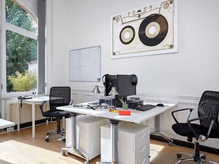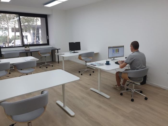- Price for a monthly workstation in a private office: € 300 excluding charges / month