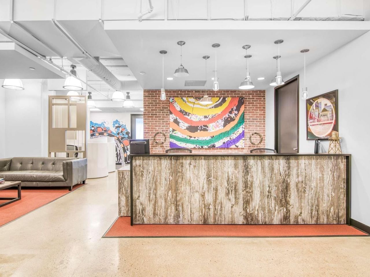 Natural light creates an upbeat feel within this glass skyscraper, connected to a hotel via a glass bridge that’s perfectly positioned for visitors.