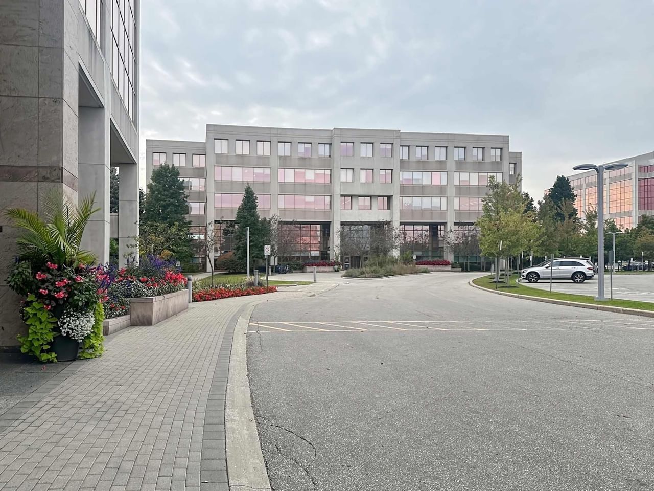 This striking six-storey glass building is surrounded by the Canadian headquarters of major high-tech companies.