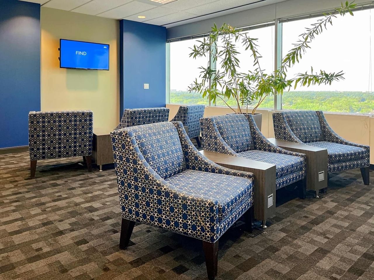Take in the excellent city views from our inspiring workspaces, and relax in the on-site coffee bar or comfortable lounge area.