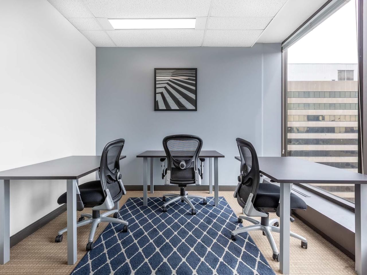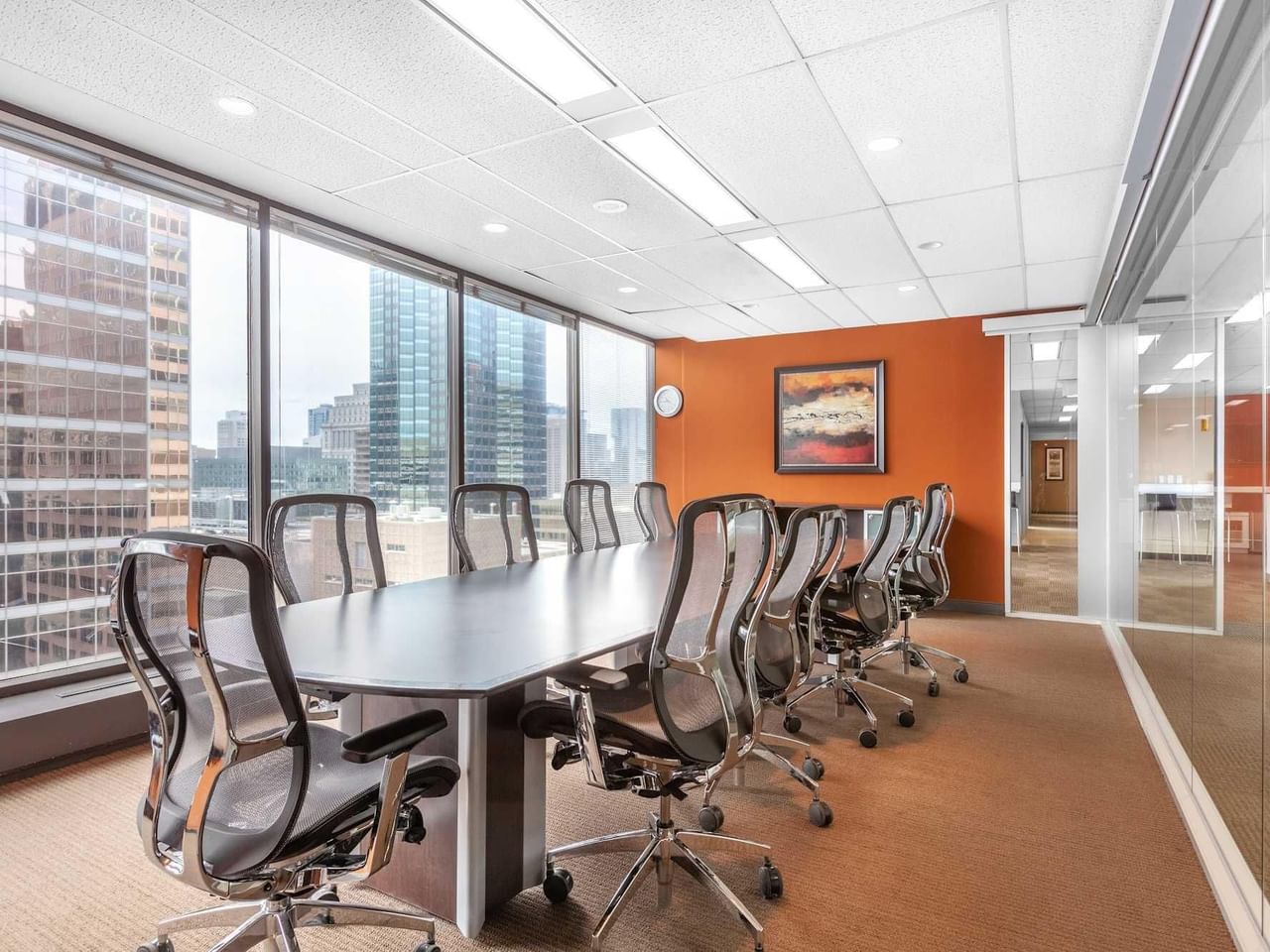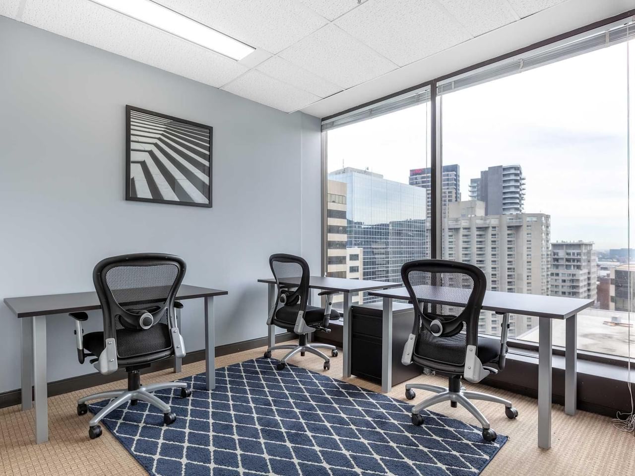 Find productivity and focus in the building’s modern interior, with floor-to-ceiling windows providing plenty of natural light and striking views of the city.