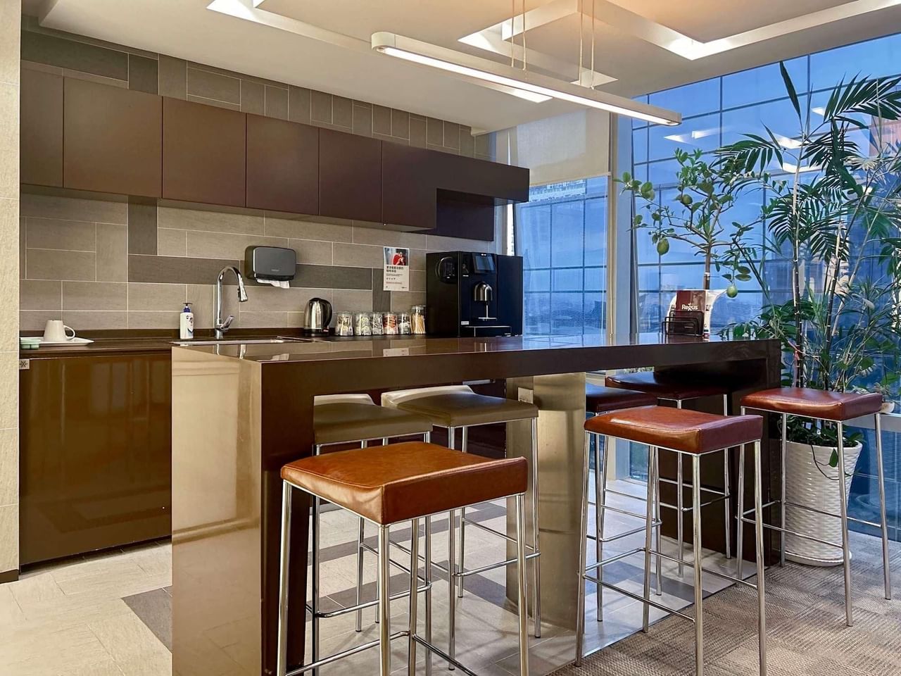 Work comfortably in a bright, modern workspace in this stunning glass building, with expansive windows that let in plenty of light.