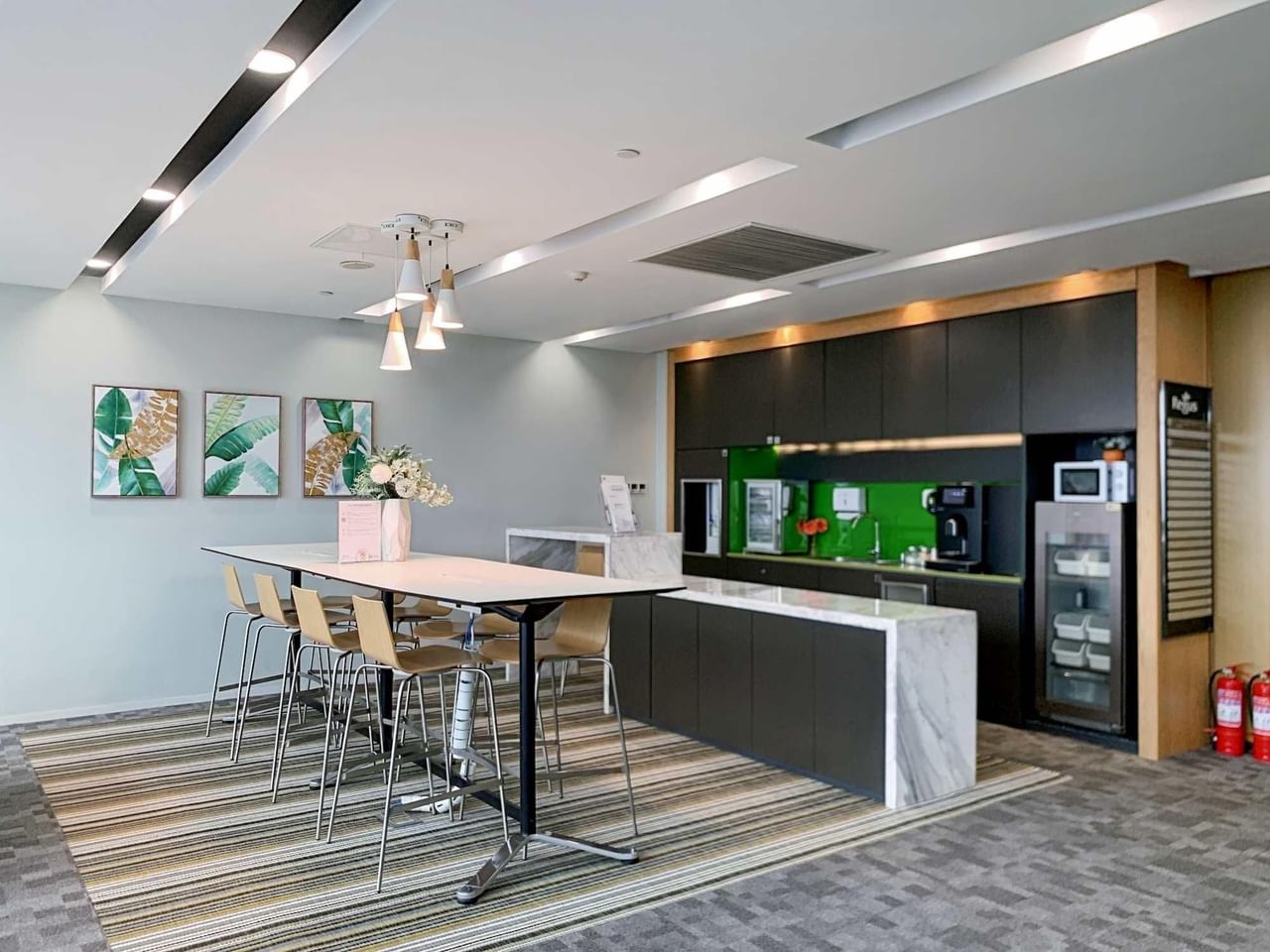 Impress clients with the building’s modern glass façade, complemented with contemporary, thoughfully designed office space.