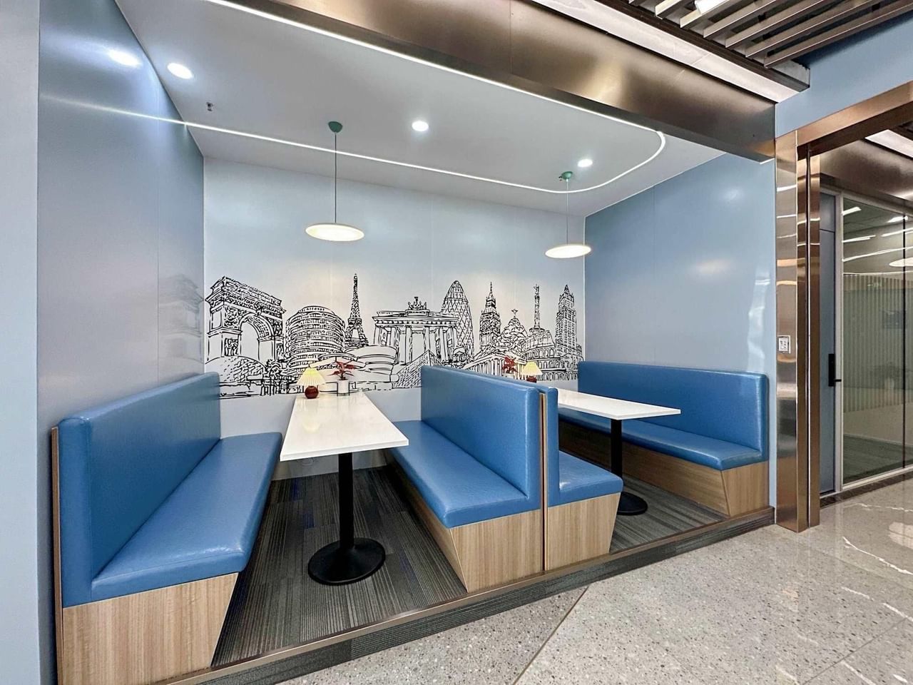 Take a breather and engage with colleagues in sociable breakout areas.