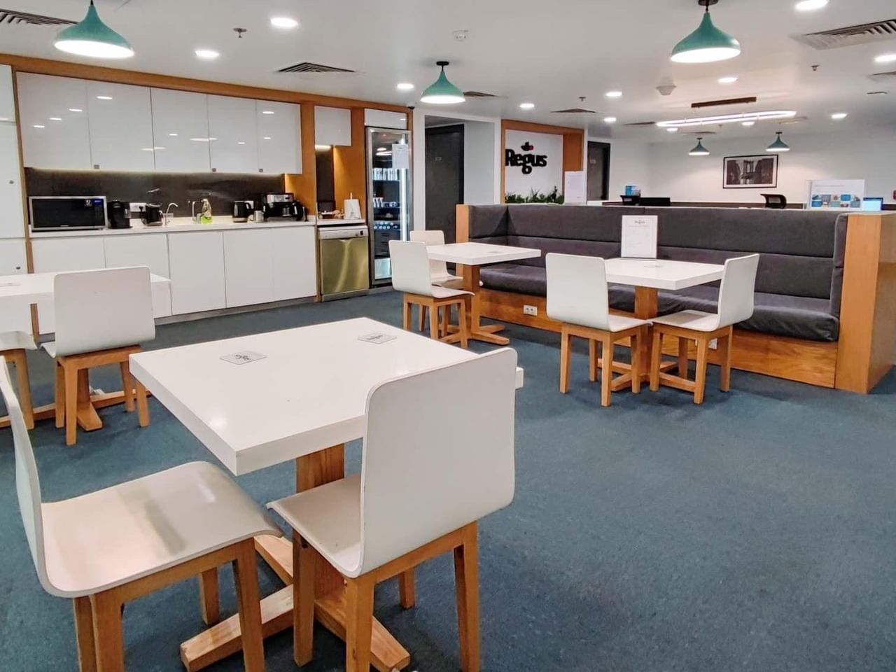 In addition to having WIFI access, the ability to reserve meeting rooms and access to common areas, Regus Paramount Business Complex has or offers: