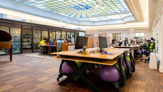 Work efficiently in modern and colorful offices, and relax in the comfortable lounge areas. At the end of the day, take advantage of the building's ideal location to explore downtown's stores, bars and restaurants.