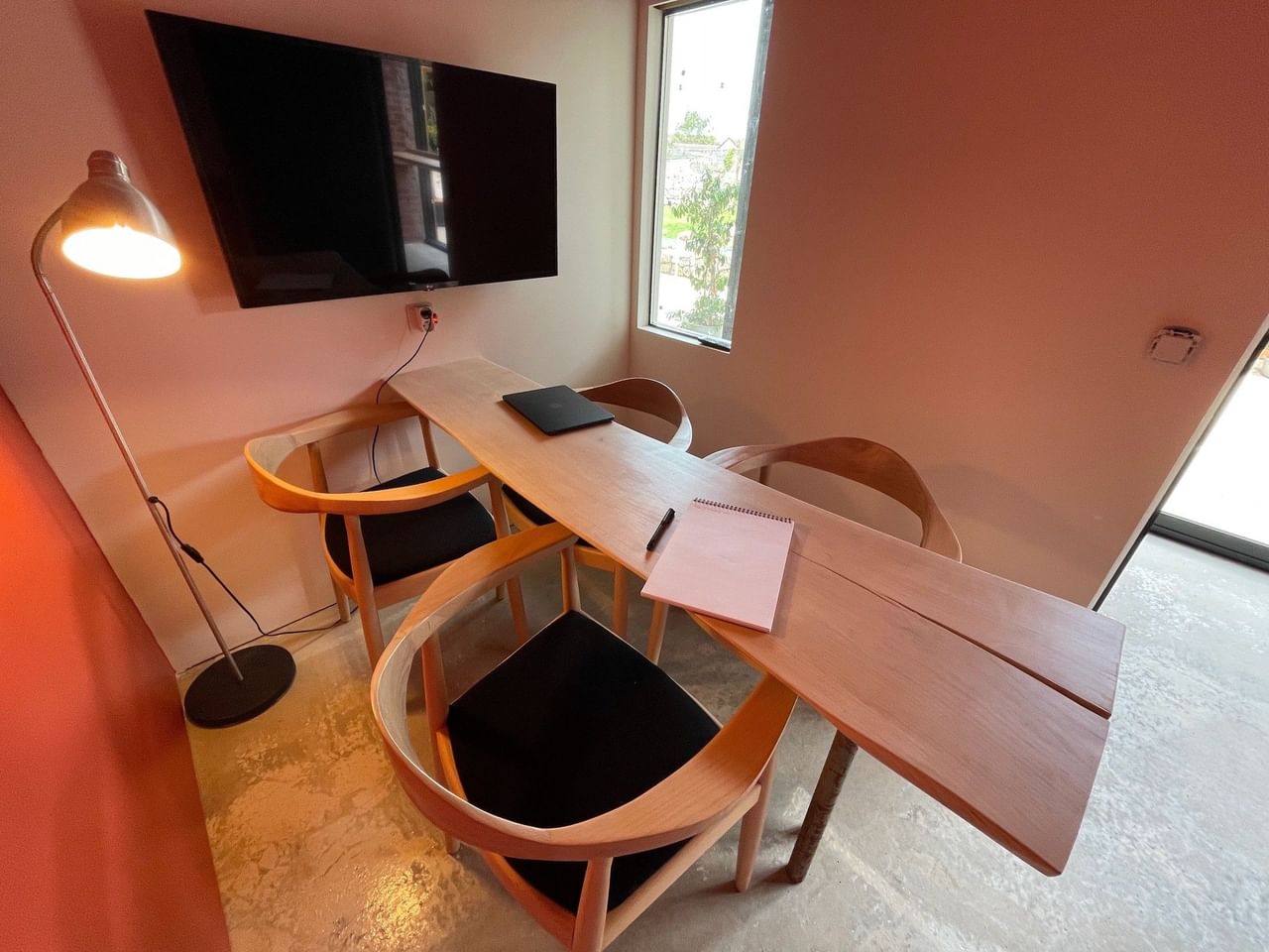 A private meeting room for 4 people, equipped with a 43-inch 4K screen and whiteboard, allows you to make calls or hold meetings in complete confidentiality.