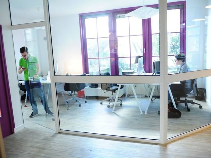 - Price for a monthly workstation in a private office: € 180 excluding charges / month