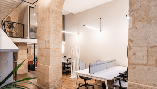 Private or shared offices, meeting spaces, terraces: the venue offers remarkable architecture, natural light and a calm atmosphere, in one of Bordeaux's best neighborhoods.