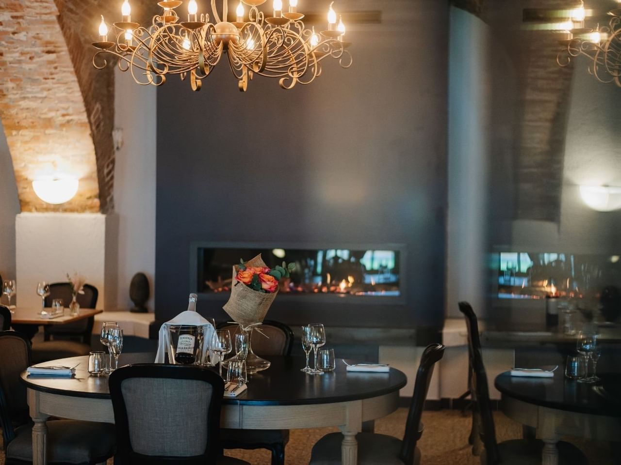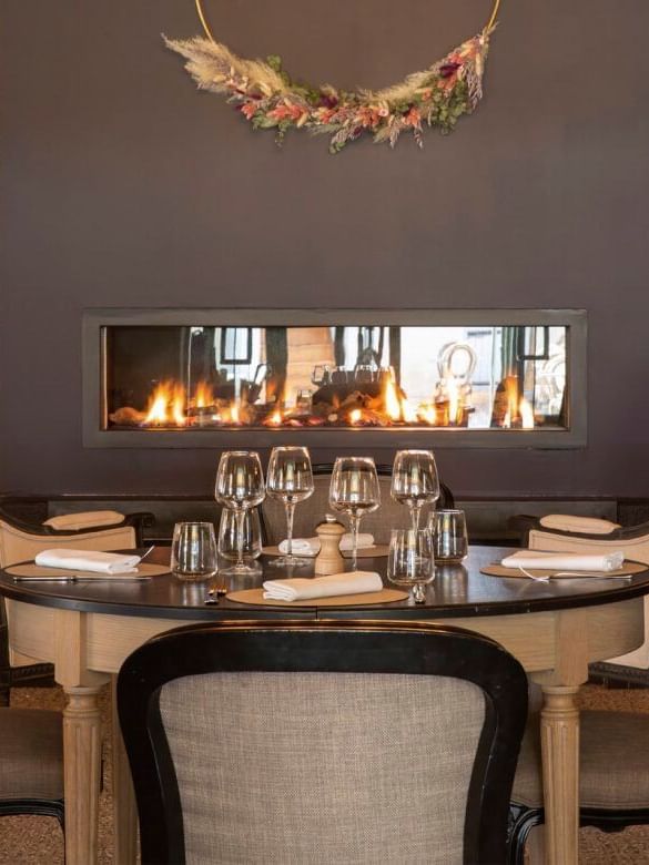 The restaurant and its fireplace, as well as the bar, are housed under the vaulted ceilings of the former stables, a testimony to a rich past and the warm heart of the establishment.