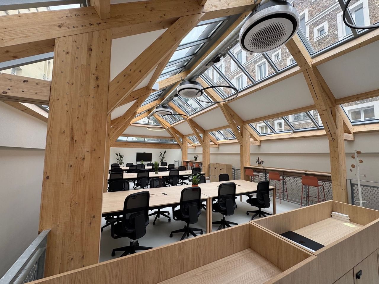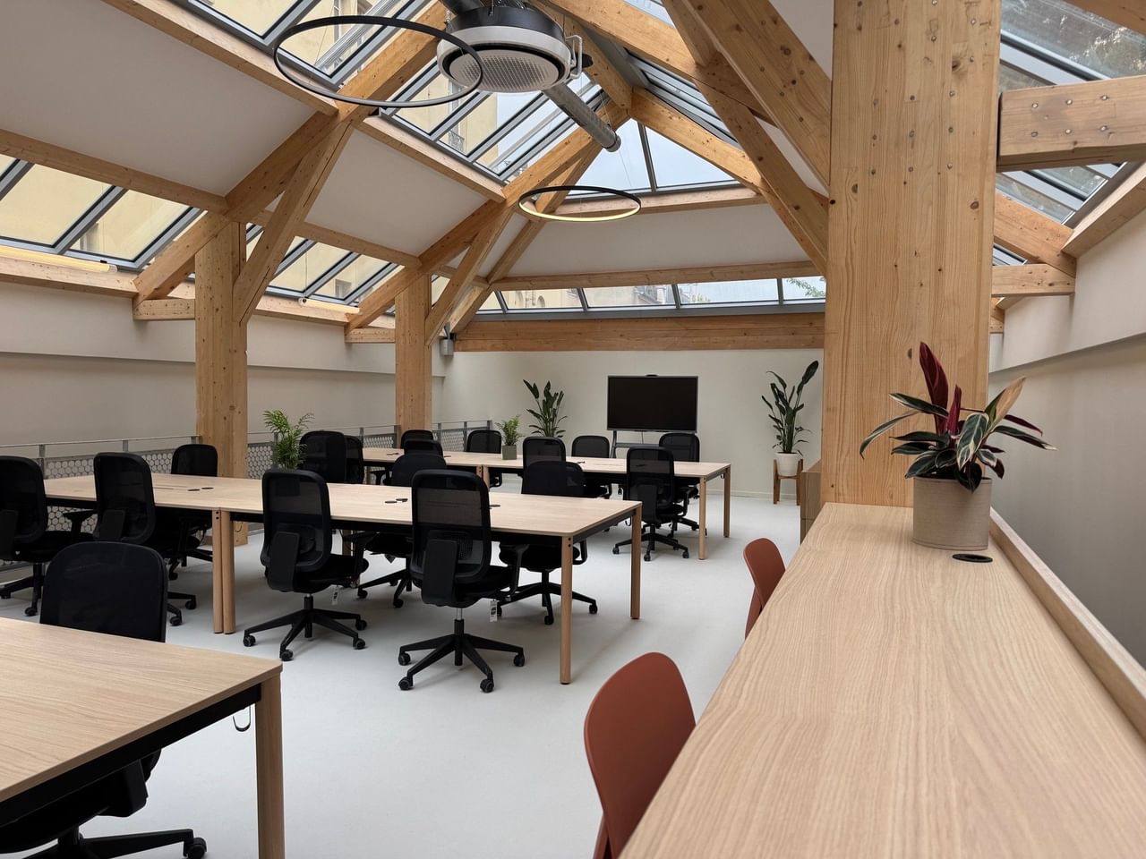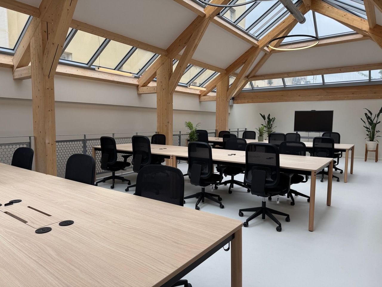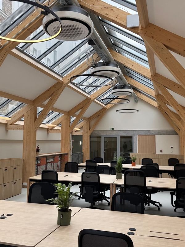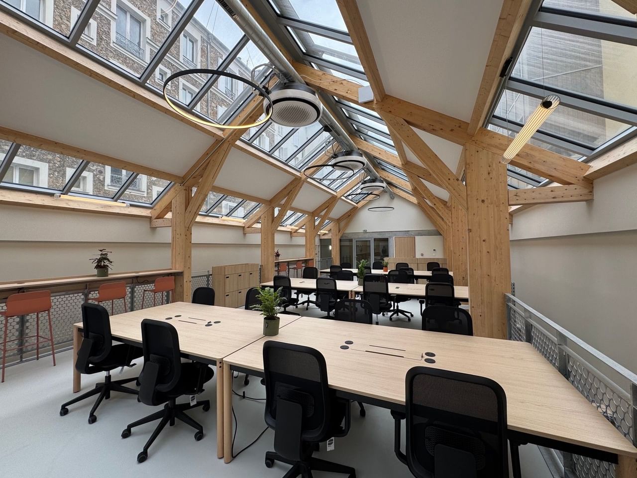Designed for coworking, it offers closed offices, open spaces and welcoming common areas.
