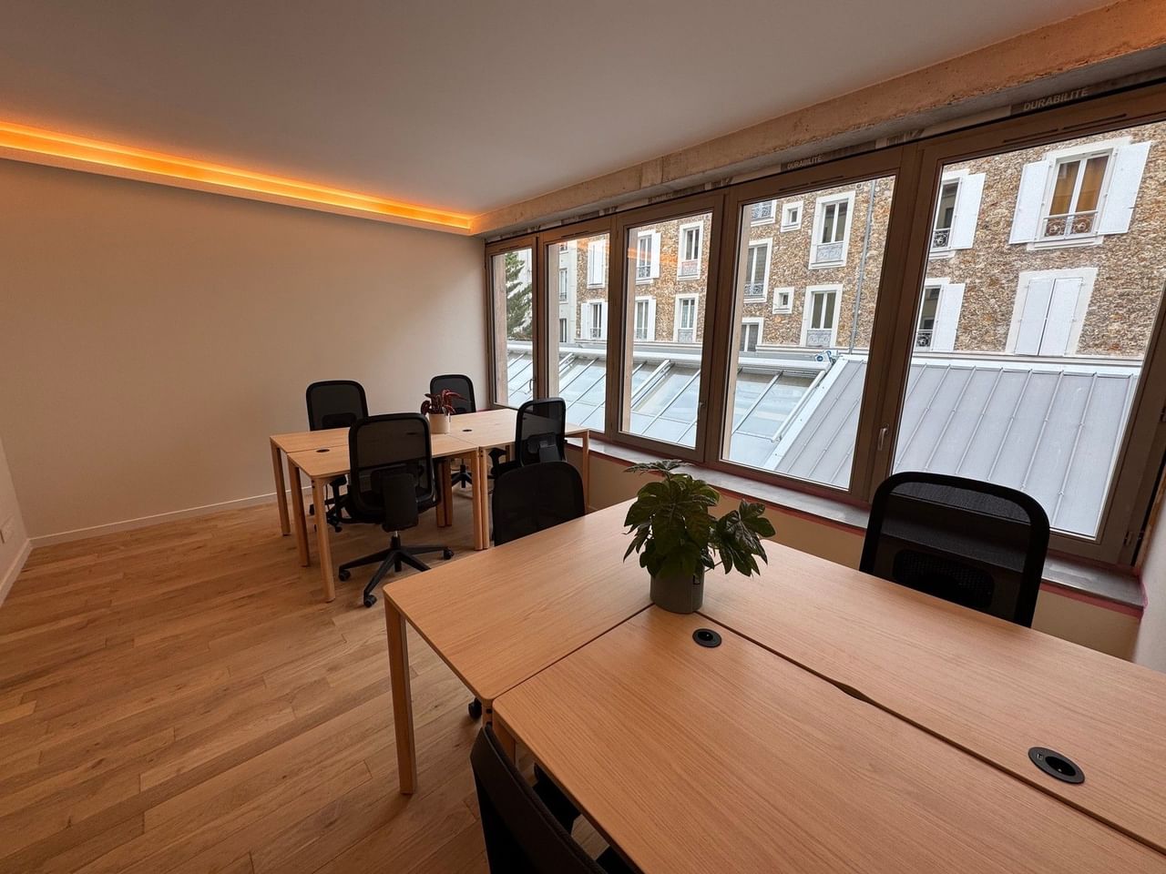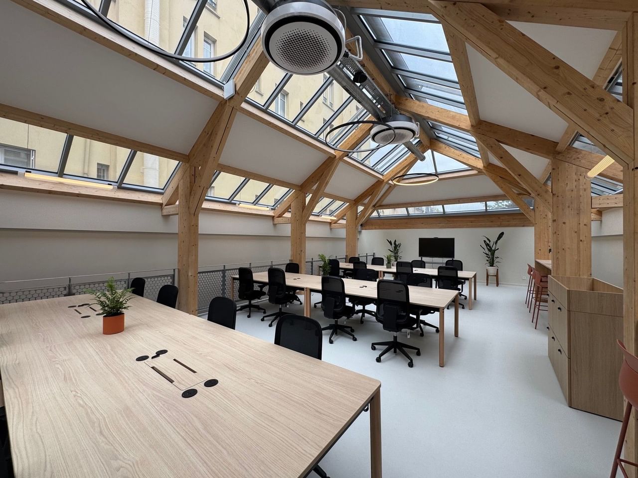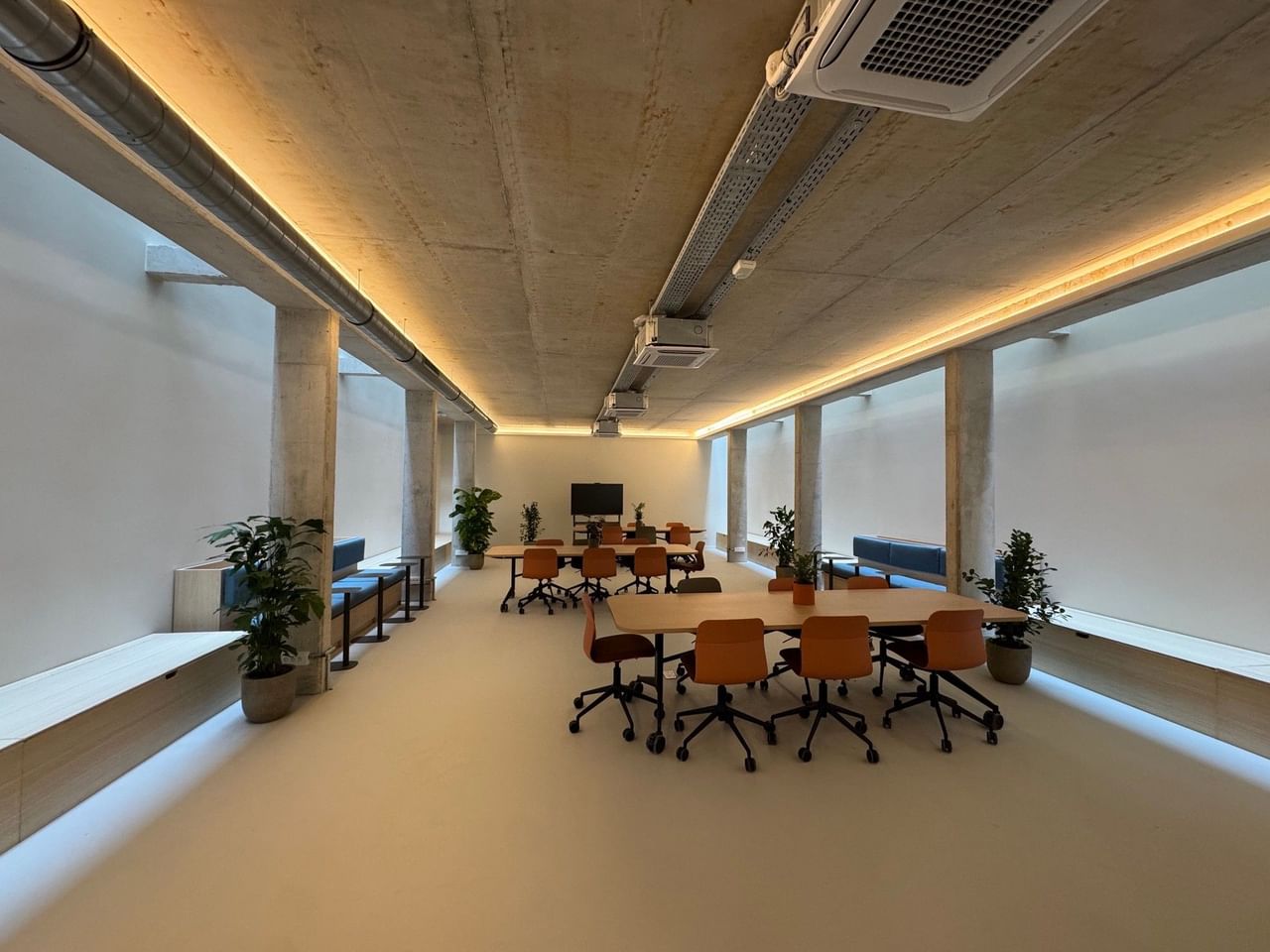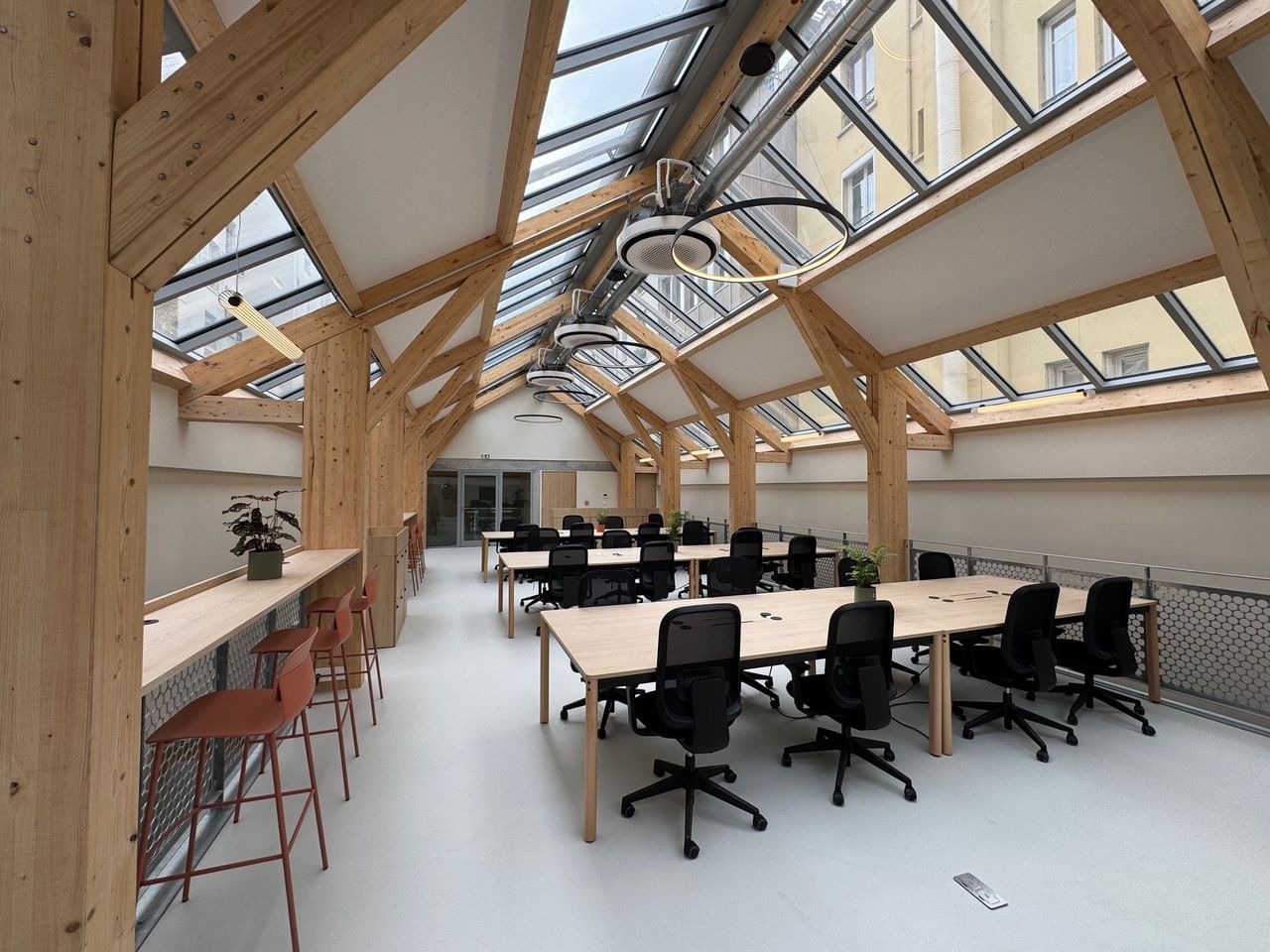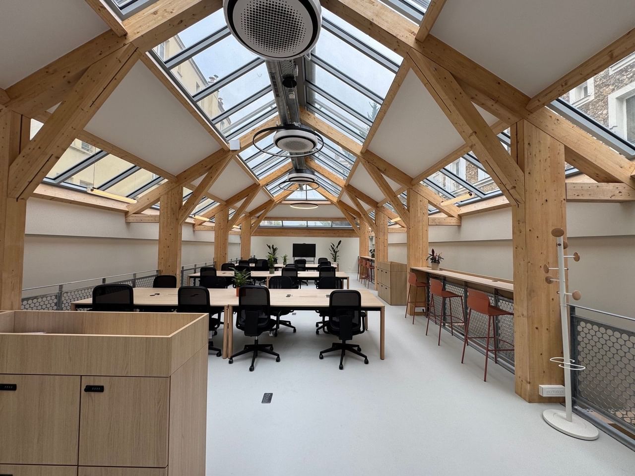 Designed for coworking, it offers closed offices, open spaces and welcoming common areas.