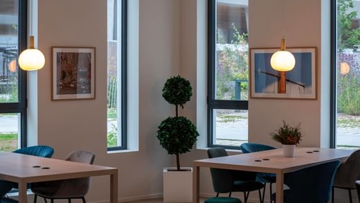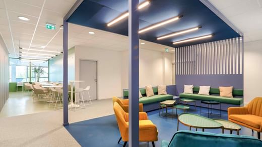 We have 60 private offices, from 10 to 76 m², as well as 800 m² of shared common spaces (a reception, lounges, a lounge for lunch, a panoramic terrace, a shower).