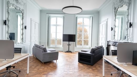 The building located at No. 10 Quai Turenne in Nantes, was built in the eighteenth century, as part of the subdivision of the island Feydeau. The building was listed as a historical monument in 1984. Since 2019, the space has been imagined for an equipped office facility that can accommodate 18 to 20 workstations. The premises are located in the heart of downtown Nantes at the foot of the "Commerce" tramway stop. They are composed of a waiting area for customers, meeting rooms of 8-10 stations and 2 spaces that can accommodate several offices and receive customers. Closed lockers for confidential storage of files.