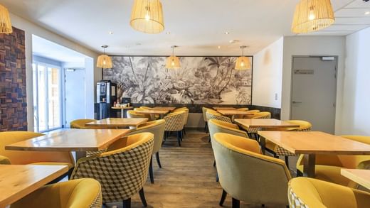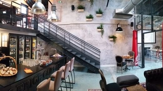 Nestled within a 3-star hotel, our myWO Lib' space offers an elegant setting for your business activities, with comfortable furnishings and free Wi-Fi.