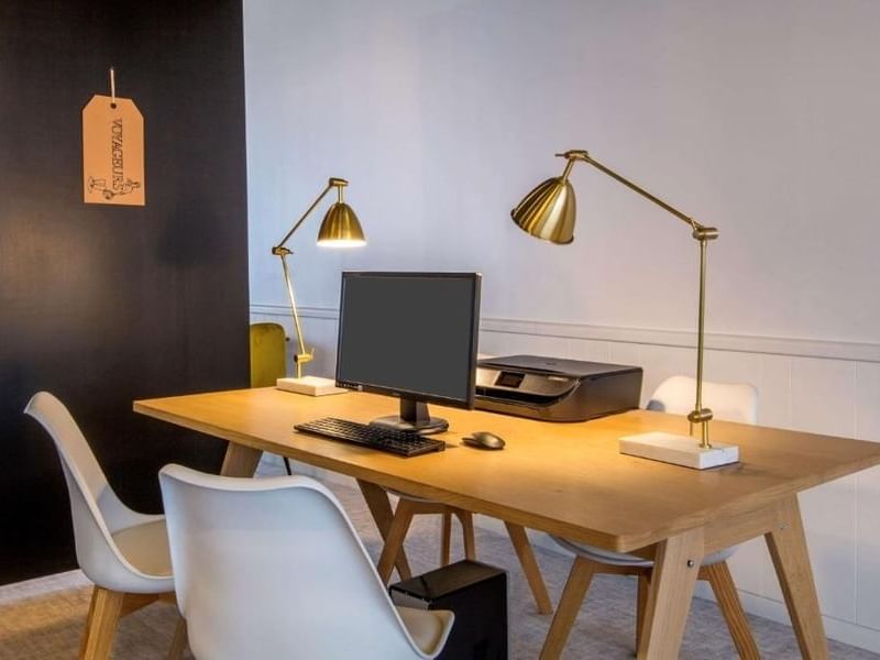 In a calm environment conducive to productivity, make progress on a file, prepare a presentation, check your e-mails or host a customer meeting.
