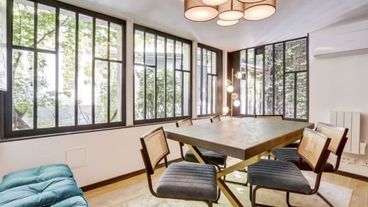 It is composed of a vast open-space, a living area under a superb La Verrière and 2 meeting rooms (up to 12 people). Also designed for events, the open space can be configured in several different ways.