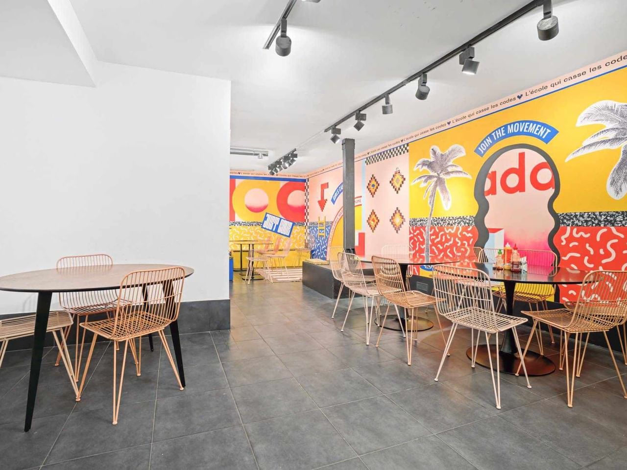 Located on the 1st floor, this 250 m² semi-private space offers 35 workstations in a modular environment between open space and offices, with a lunch and coffee area, ideal for a team looking for flexibility and conviviality.