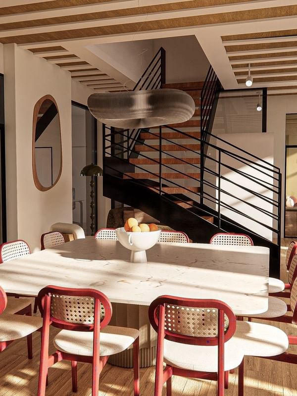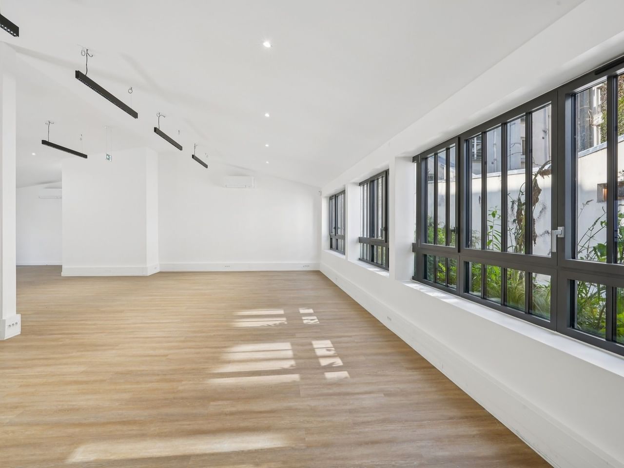 Located in the heart of the 10ᵉ arrondissement, in the quiet Passage Dubail, a stone's throw from Gare de l'Est and Gare du Nord, this 250 m² space has been completely renovated and designed to offer your teams a premium, flexible and bright working environment. With natural light flooding through, the space has been optimized to accommodate up to 36 workstations in an environment conducive to both productivity and exchanges. It features three meeting rooms for collaborative work and two phone boxes, ideal for calls or concentration time.